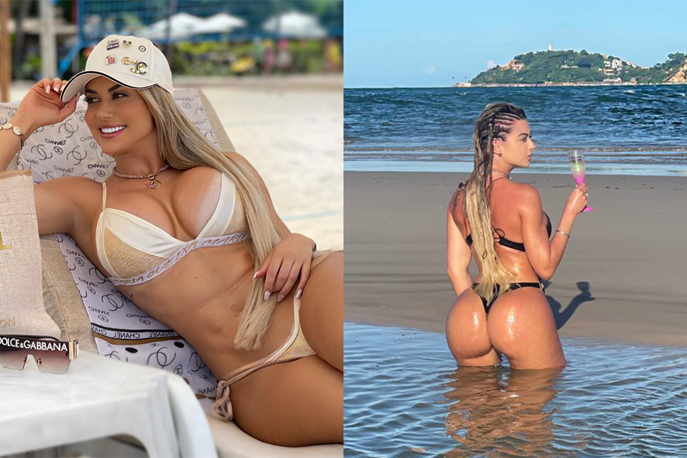 Musa fitness, Amanda França ostenta corpão na praia e revela seu ‘bumbum care’: “sempre hidratado”
