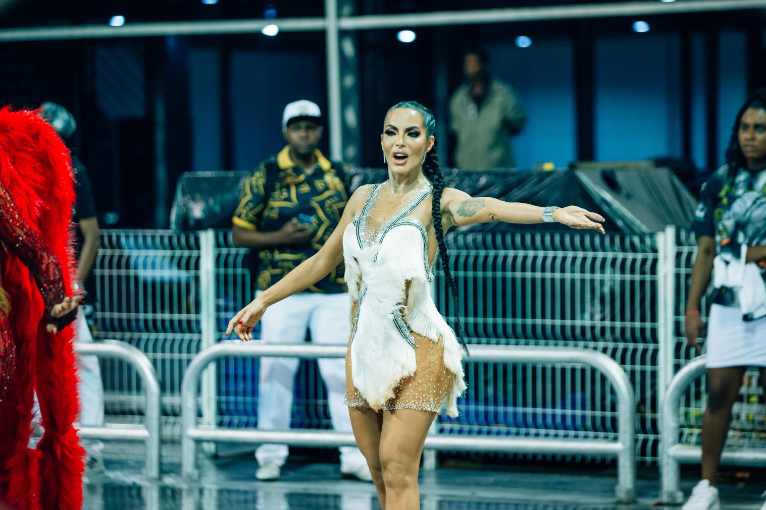 Carla Prata participa de ensaio técnico da Vai-Vai em São Paulo