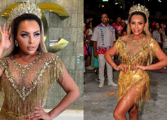 Francine Carvalho, rainha de bateria da X9 Pioneira no Carnaval de Santos/SP, o segundo maior do Estado, desfilou na madrugada…