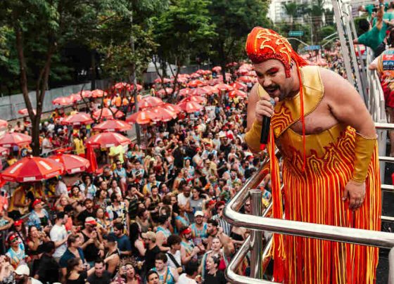 Tiago Abravanel desfila com o Bloco do Abrava, em São Paulo, e homenageia Silvio Santos