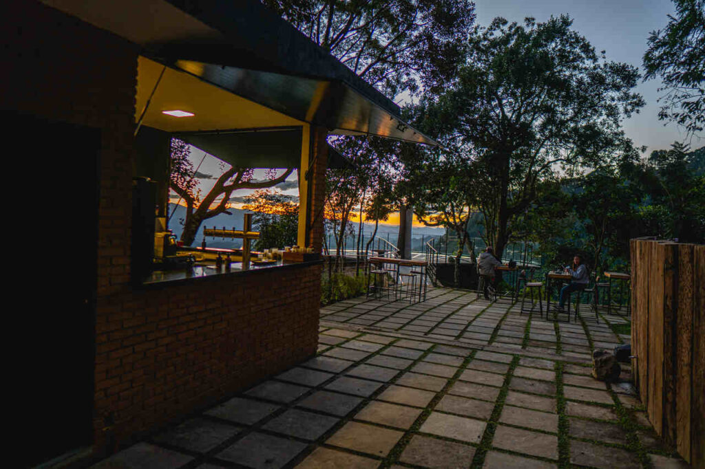 Para chegar ao Mirante, o visitante passa por uma trilha em meio à mata verde, apreciando sons de pássaros e uma vista maravilhosa do Alto Lajeado. Ao chegar no espaço, é possível ver toda a paisagem das montanhas da Serra da Mantiqueira, além de ter a oportunidade de contemplar e ouvir o som das águas da cachoeira Gavião Gonzaga, a mais longa e volumosa do Estado. O espaço conta com um aconchegante quiosque e com o Bar do Mirante que oferece todos os rótulos das cervejas e chopes produzidos na fábrica da Cerveja Campos do Jordão (no melhor estilo beba local!), além de porções e petiscos. Nas tardes, o pôr-do-sol com uma visita especial domina a experiência.
