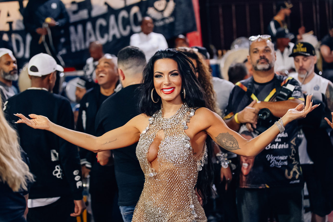Apresentadora esteve no último ensaio na quadra da tradicional escola do Bixiga na noite de domingo (17)