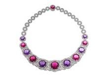 Colar da alta joalheria em ouro branco cravejado com elementos madrepérola, 6 rubelitas redondas (33,12 ct), 6 ametistas redondas (22,71 ct) e pavé de diamantes cravejados (5,10 ct)