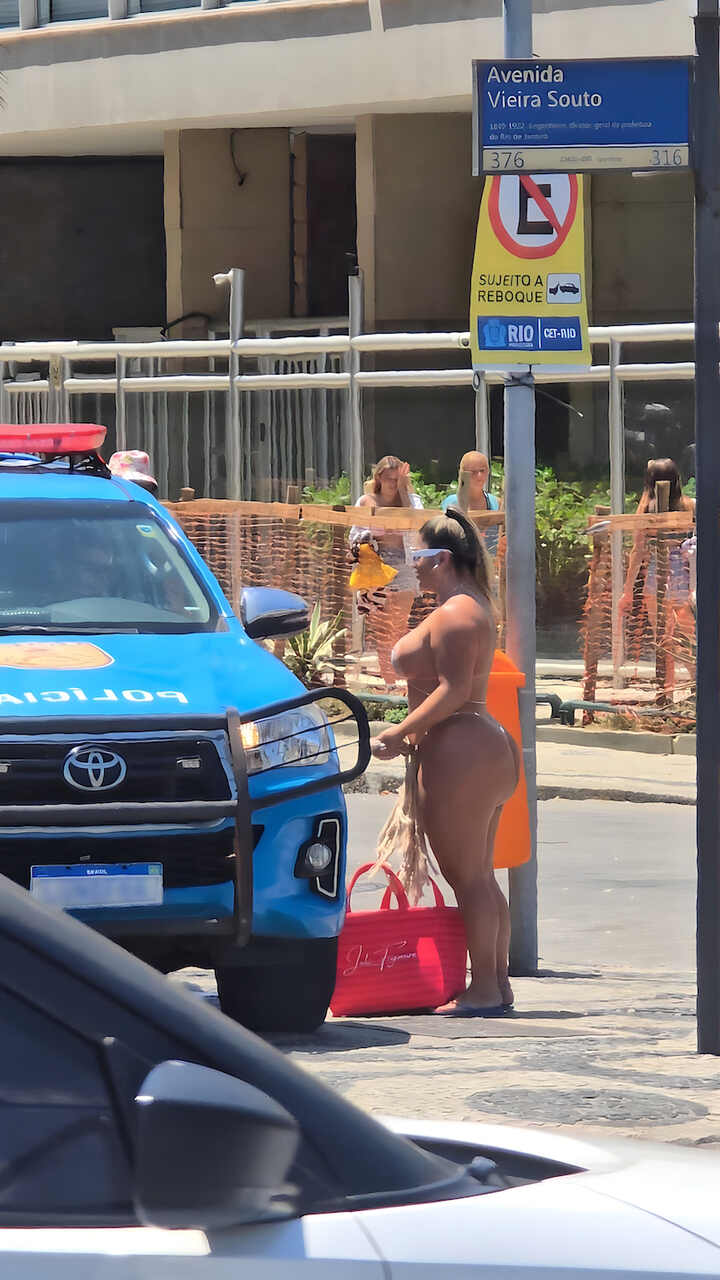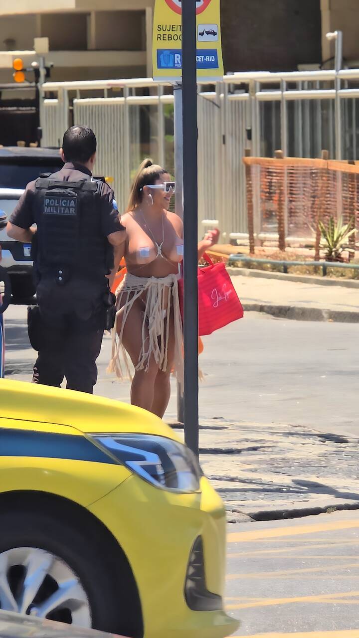 Em clima de Carnaval, Juli curtiu um bloquinho perto do posto 9 de Ipanema e depois foi para a praia. Nos adesivos, ela estampou um QR code para promover sua plataforma adulta, onde compartilha nudes e vídeos picantes. Ela é ex-caminhoneira e deixou a profissão para faturar na internet.