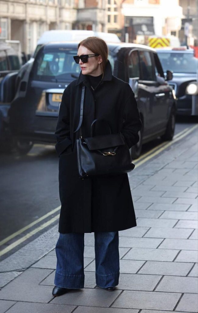 A renomada atriz Julianne Moore foi flagrada desfilando pelas ruas de Londres com um visual sofisticado e elegante, destacando acessórios da grife italiana Bottega Veneta. A estrela de Hollywood apostou na icônica bolsa Ciao Ciao e nos estilosos óculos de sol Tri-Fold Square, reafirmando seu status como ícone de moda.
