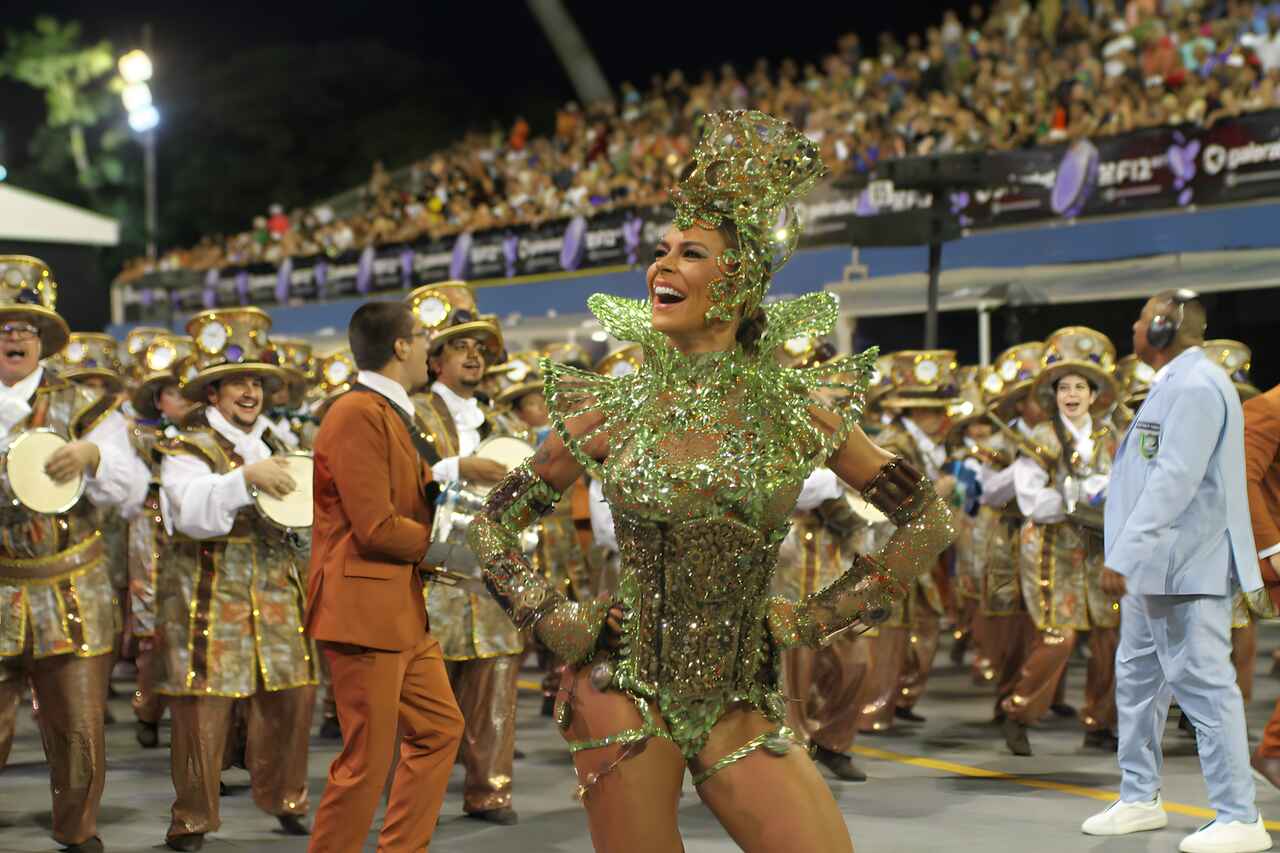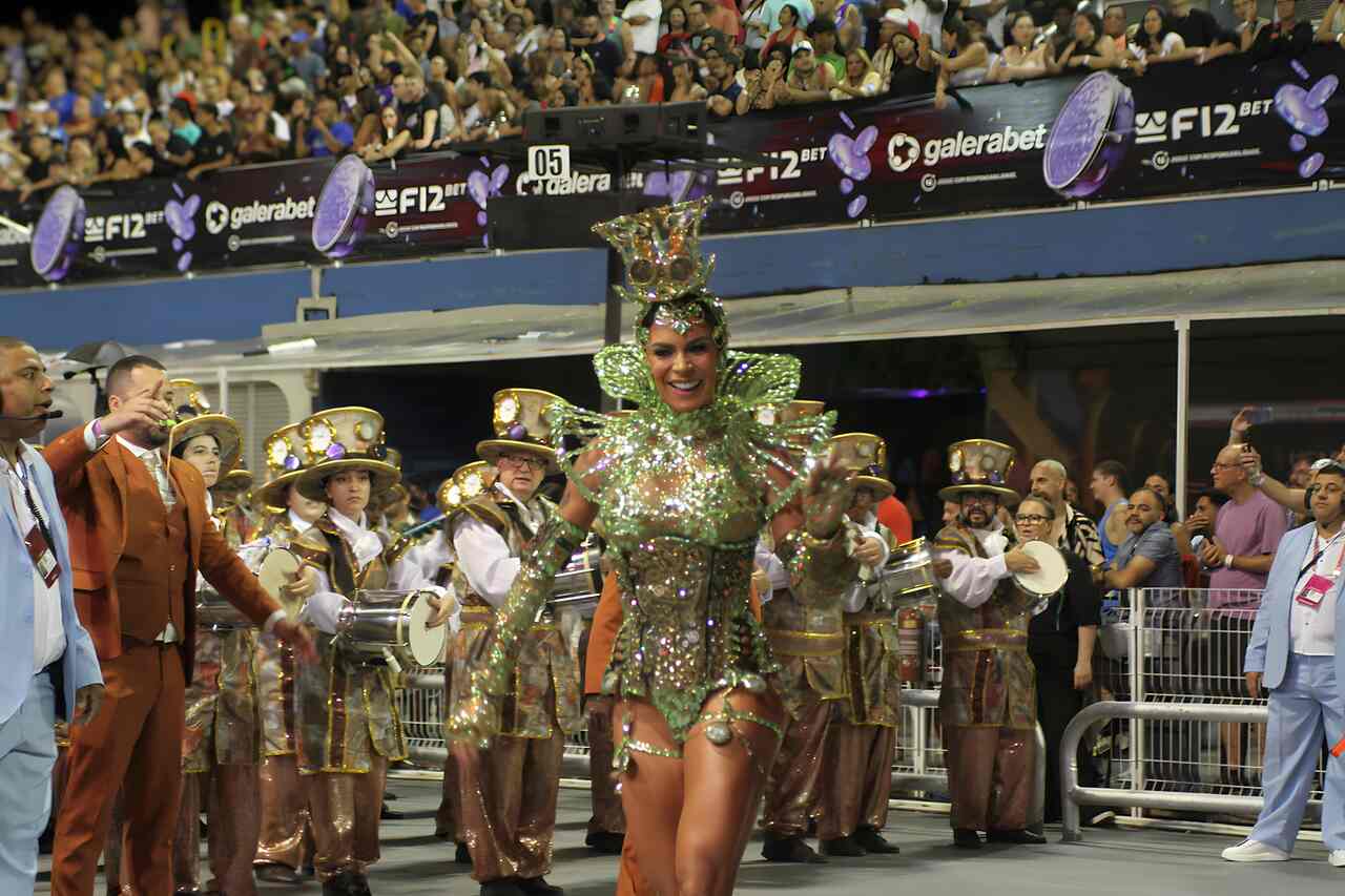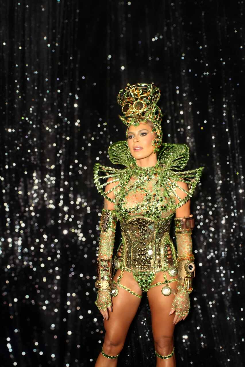 “É uma proposta diferente, mais contemporânea, que foge daquele padrão de penas e plumas com mais volume. Fizemos em tempo recorde, o ateliê deixou pronta em uma semana. Me senti mais livre para sambar, mais leve mesmo. Decidi abandonar o costeiro porque sempre machuca e pesa muito, às vezes atrapalha na evolução. Estou numa fase que quero curtir o desfile”, diz.
