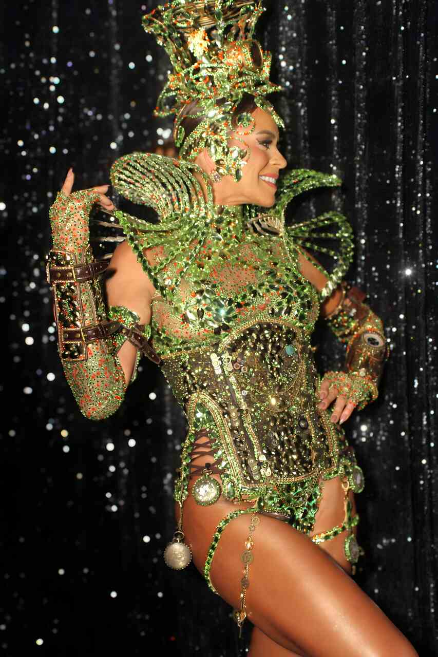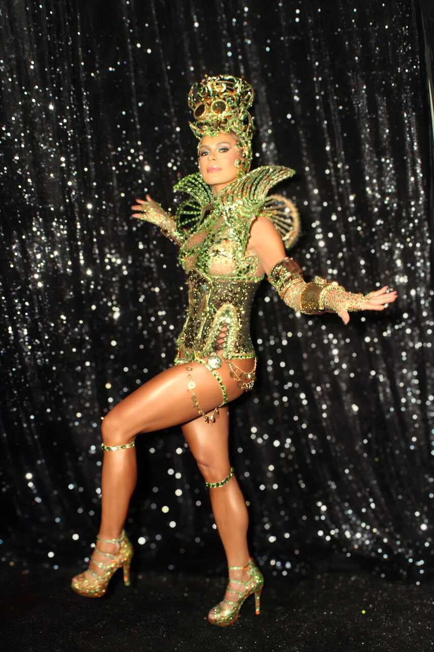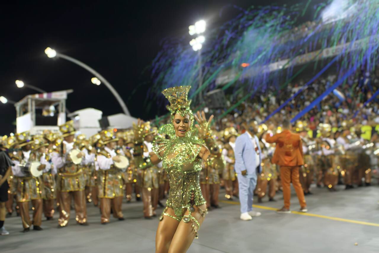 “É uma proposta diferente, mais contemporânea, que foge daquele padrão de penas e plumas com mais volume. Fizemos em tempo recorde, o ateliê deixou pronta em uma semana. Me senti mais livre para sambar, mais leve mesmo. Decidi abandonar o costeiro porque sempre machuca e pesa muito, às vezes atrapalha na evolução. Estou numa fase que quero curtir o desfile”, diz.