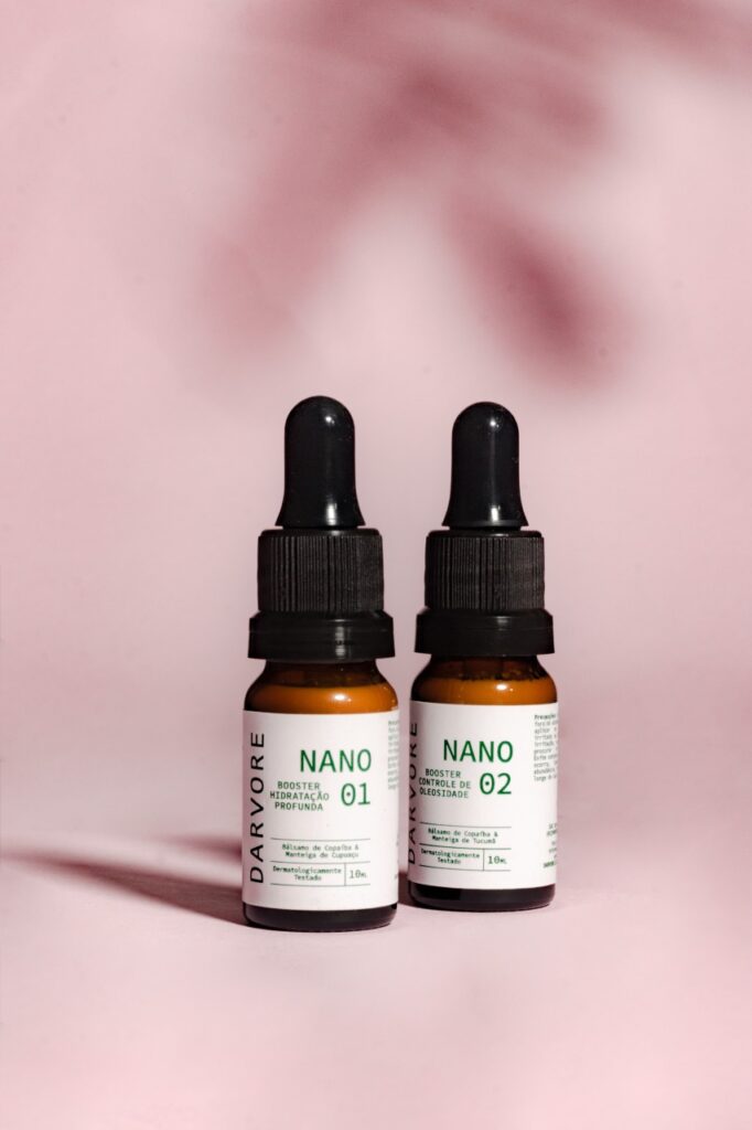 Em junho deste ano, a Darvore lançou os dois, e por enquanto únicos, produtos da marca. Um deles promete uma “super-hidratação”, acima da média da área de cosmetologia, para a área do rosto. João explica que a loção “Nano 1”, de hidratação profunda, revela uma capacidade de hidratação de 41% no período de duas horas. Depois de 24 horas da aplicação, pesquisas indicam que a taxa ainda fica em 27%. Já a “Nano 2”, de controle de oleosidade, alcança 16% de eficiência em duas horas e, depois de 24 horas, ainda está na marca de 9%. “Na comparação com produtos convencionais da indústria cosmética, a duração das ações é muito maior”, explica João.